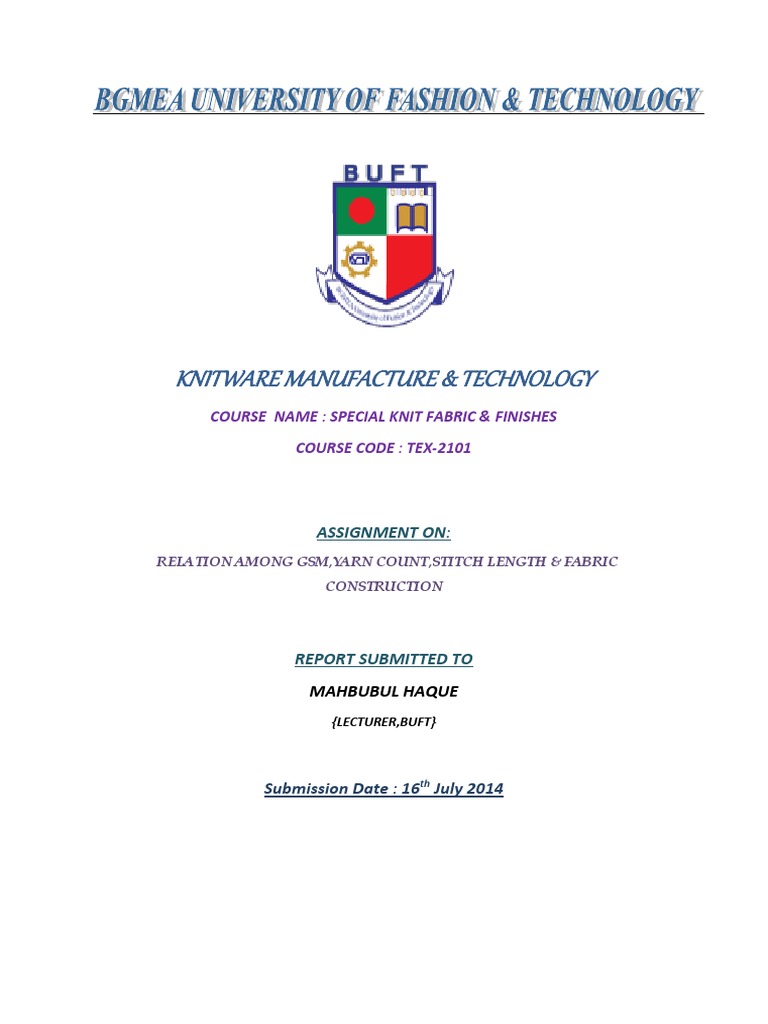 Relation Among Gsm Yarnc Ount Stitch Lengthf Abric Construction