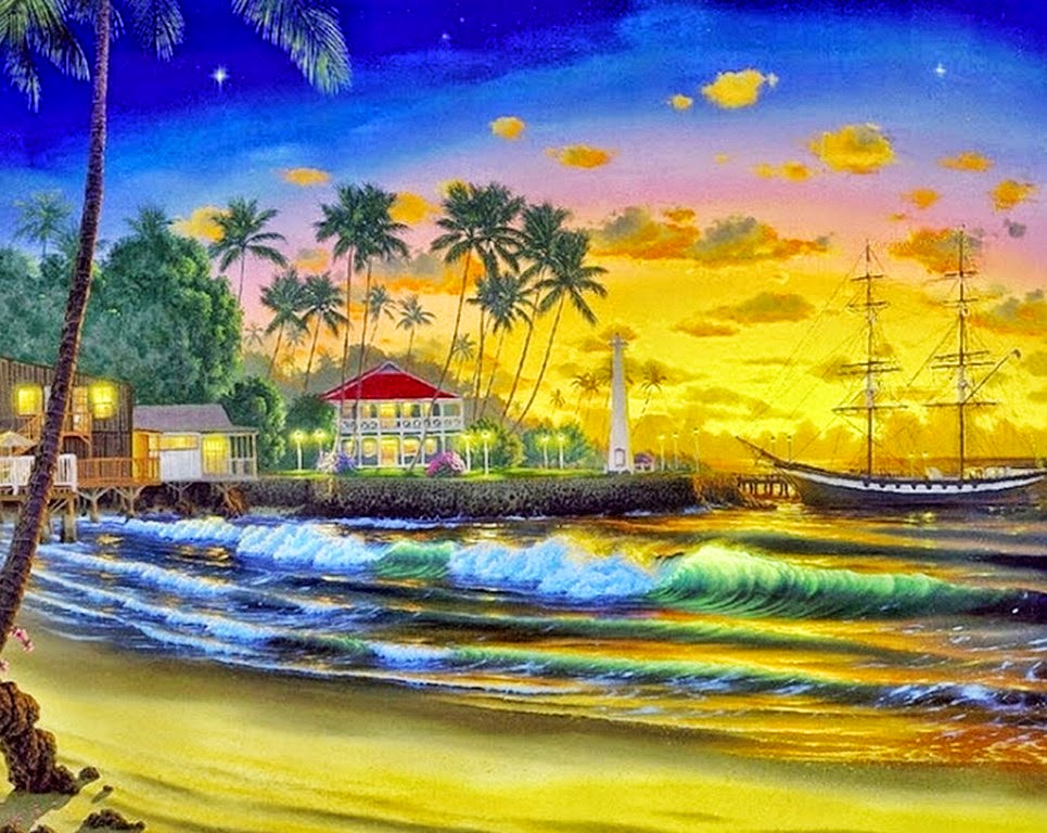 Diseno De Playa Al Atardecer Palmera De Paisaje Pintura 100
