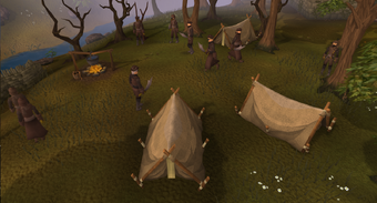 Outlaw perch and windmill camp. Being an outlaw has a price. Its located at the top of a rock plateau. It consists of a series of tents wooden stick defenses a stable and the titular windmill.